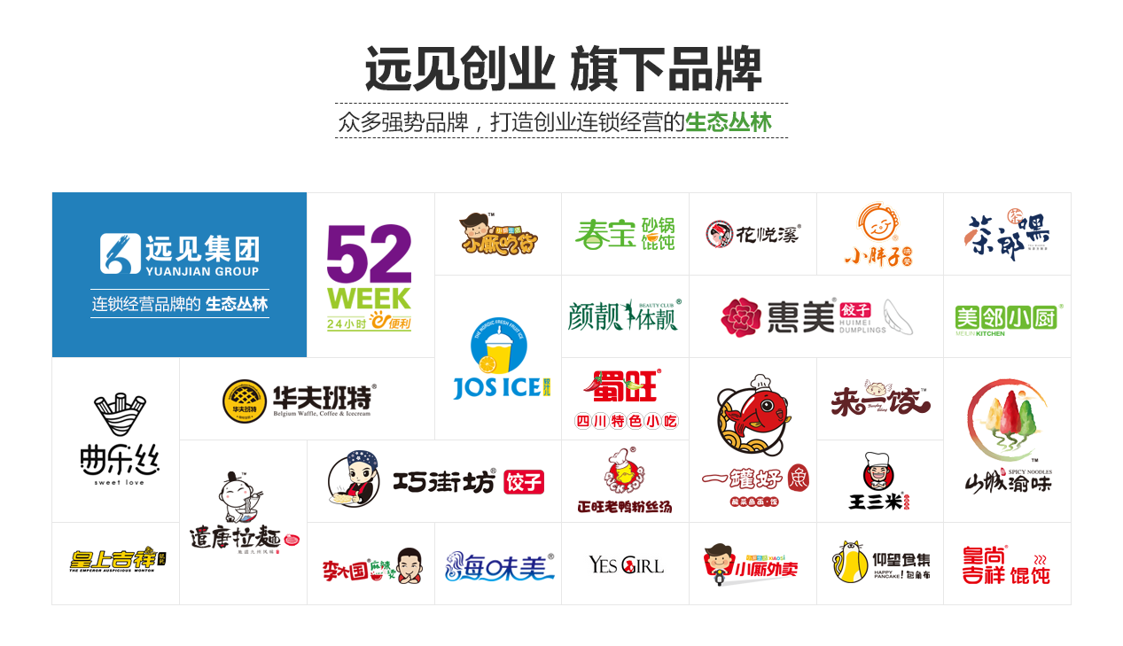 遠見集團坐落于美麗的海濱城市——青島,自1997年成立以來,已經有21年的成熟經驗,在業內奠定了不容小覷的影響力。旗下品牌涵蓋美食、美業、便利店三大聚焦行業,家喻戶曉的特色大餛飩——皇尚吉祥、薄皮水餃——巧街坊、海鮮水餃——惠美餃子、正宗日式拉面——遣唐拉面、冰淇淋吉事果復合小吃——曲樂絲、以高山茶為茶基底的芝士鮮果奶茶——茶浪嘿、網紅小吃煎餅果子——仰望食集等美食品牌,也有以顏靚體靚為代表的美容品牌,以及52week便利店等知名創業連鎖品牌,迄今在全國已有近3000家加盟店,深受社會各界青睞!
