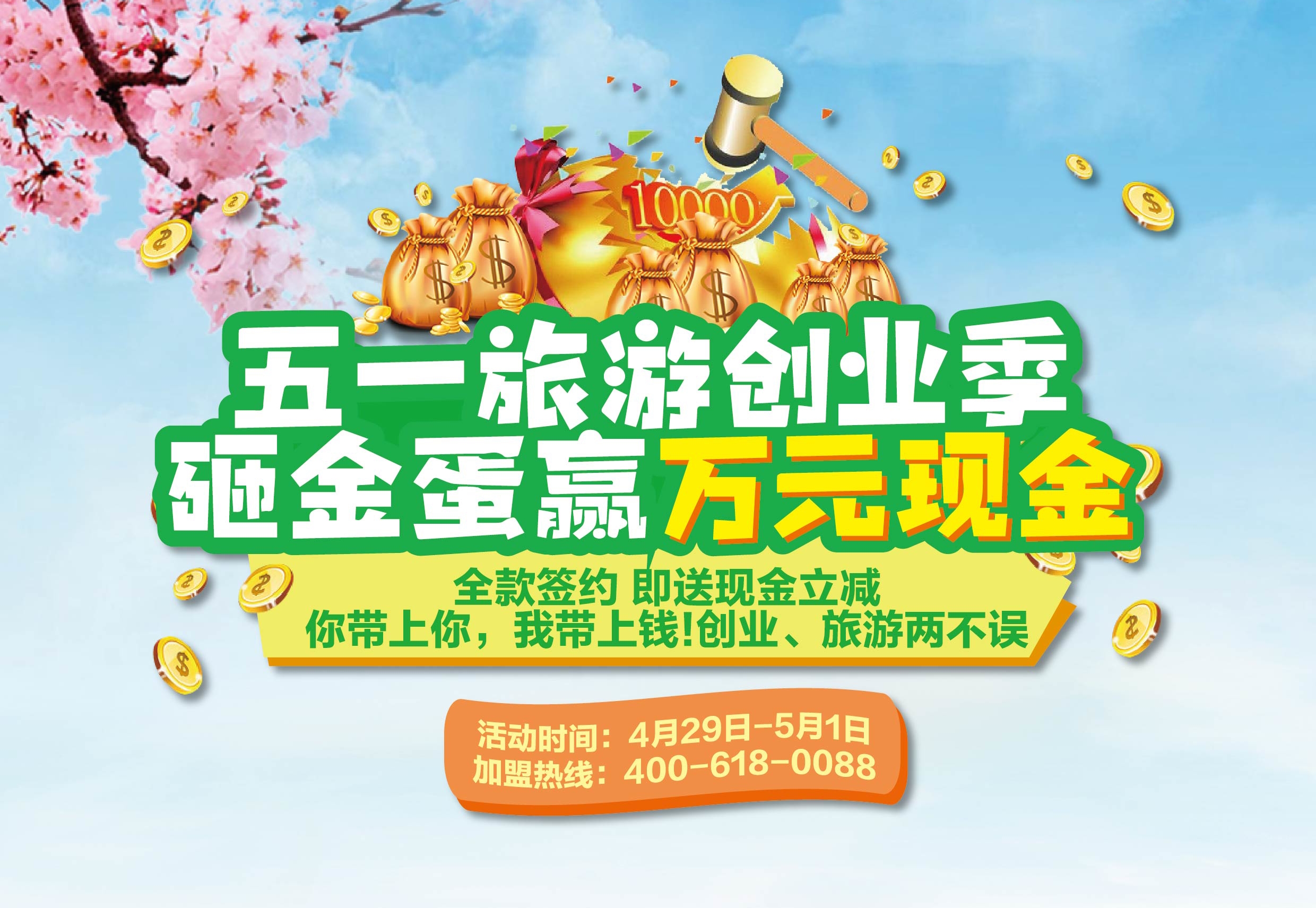 如果您有創業的想法,不妨來青島總部考察一下,所謂眼見為實,確認過實力才更放心。在五一旅游期間我們推出重磅活動,凡是全款簽約的加盟商都有機會參與砸金蛋活動,獲得2000-10000不等現金獎勵。